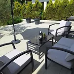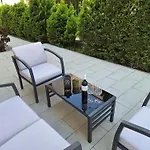 Apartament dysponuje miejscem do pobytu dziennego, patio i miejscem do siedzenia oraz widokiem na ogród i wyposażony jest w zmywarkę, klimatyzację i ściany dźwiękoszczelne. W obiekcie noclegowym goście mogą korzystać z suszarki do włosów, bezpłatnych kosmetyków i ręczników kąpielowych w łazience. Ponadto do dyspozycji Gości oddzielna toaleta i prysznic.
